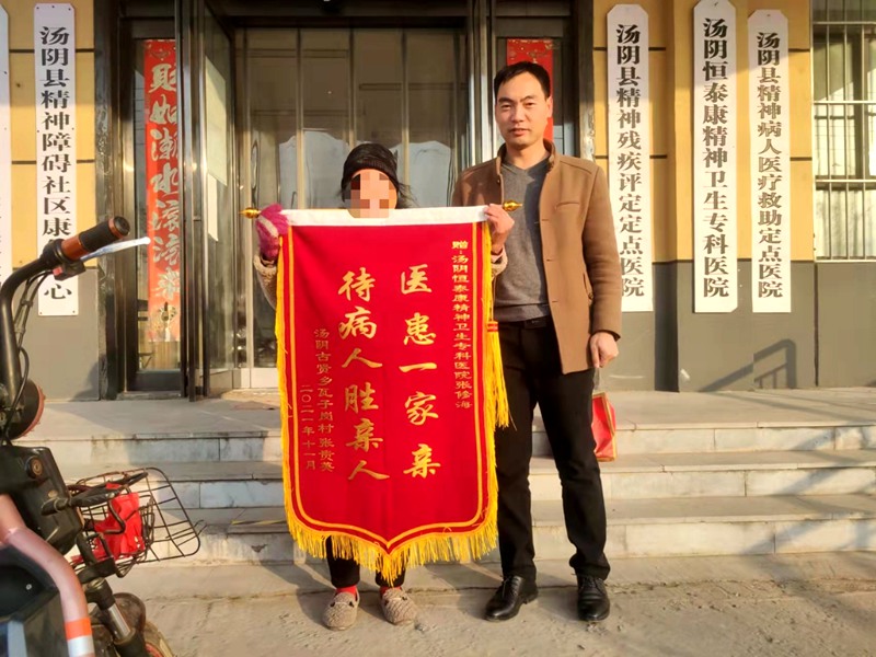11月26日,湯陰恒泰康醫(yī)院社區(qū)服務(wù)部張修海主任待患者如親人,患者張*英住院期間享受到了恒泰康醫(yī)院優(yōu)質(zhì)服務(wù),治療效果極好,特來院贈(zèng)送錦旗,表示感謝。獲得患者及患者家屬的認(rèn)可,歸因于醫(yī)院每位員工都在自己的崗位上努力付出。