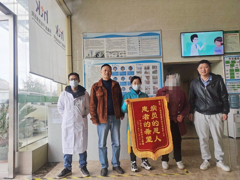 永州患者劉*娟,女,27歲,總病程10年余?;颊呖摁[無常,傻笑伴外跑10余年,眠差害怕。曾多次到株洲等地醫(yī)院住院治療過,但一直療效不佳。聽說寧遠(yuǎn)澍康醫(yī)院醫(yī)護(hù)人員對(duì)病人好,曾來醫(yī)院咨詢過,但當(dāng)時(shí)由于沒有床位,故推薦其去其它醫(yī)院,其母親聲稱愿意等我院有床位了再送來。于2021年11月7日開始在我院住院治療。經(jīng)過全院醫(yī)護(hù)人員的關(guān)心及藥物的治療,情況明顯好轉(zhuǎn)。其家里對(duì)其康復(fù)情況很關(guān)心,多次通過視頻進(jìn)行探視患者情況變化,對(duì)寧遠(yuǎn)澍康醫(yī)院的服務(wù)態(tài)度和醫(yī)療質(zhì)量很滿意!11月22日來醫(yī)院給患者送東西時(shí),專來送醫(yī)院一面錦旗,表示感謝。